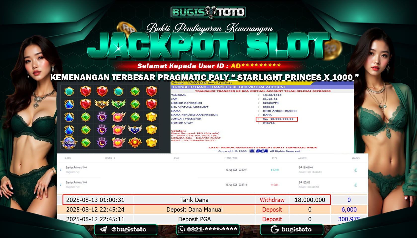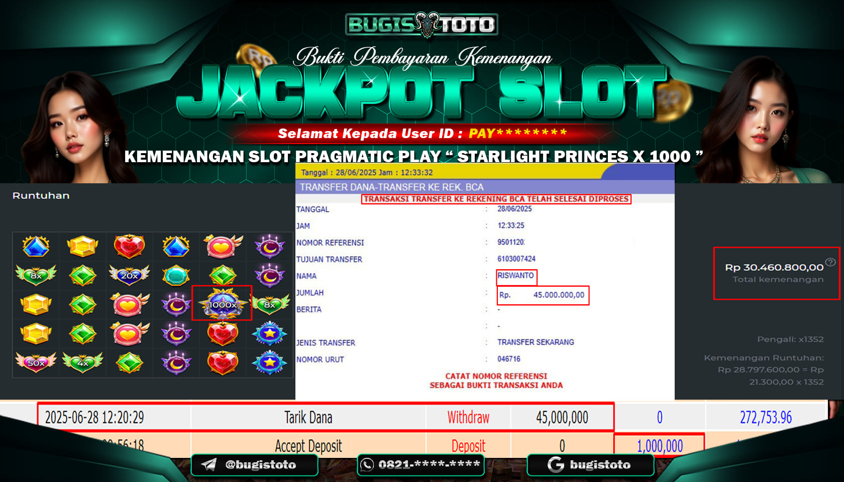 BUKTI JACKPOT MEMBER SETIA BUGISTOTO SLOT PRAGMATIC PLAY STARLIGHT PRINCESS X 1000